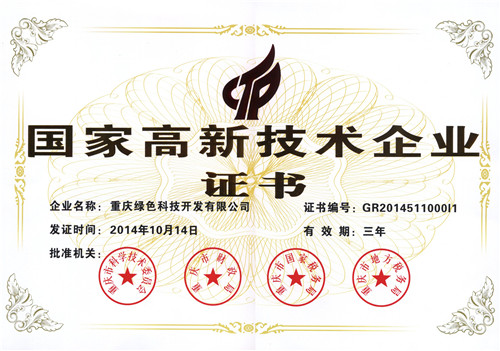 According to the Ministry of science and technology, Ministry of Finance and the State Administration of Taxation "high-tech enterprise management approach", "high-tech enterprise management guidelines" provisions, by the national high-tech enterprise management work leading group office for examination, our final won the "national high tech enterprise" certificate. The period of validity is from October 14, 2014 to October 13, 2017.