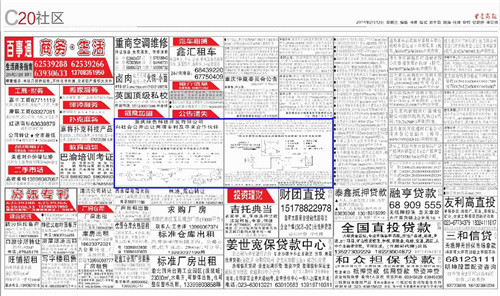 重慶綠色科技開發(fā)有限公司在《重慶商報(bào)》刊登的廣告《重慶綠色科技開發(fā)有限公司向社會(huì)公開出讓兩項(xiàng)專利及尋求合作伙伴》